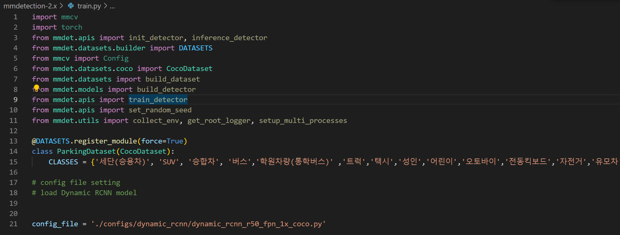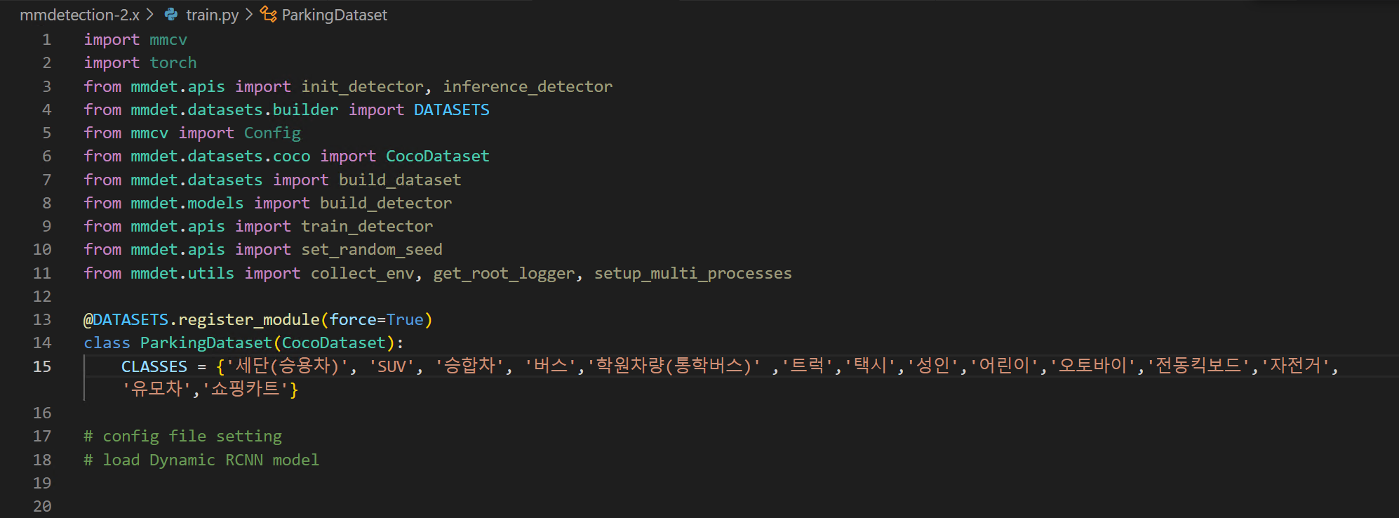 Dev record VSCode 코드 입력시 자동 줄바꿈 변경 - 반응형 문제 상황 VSCode를 사용하는데 옆으로 자동으로 스크롤이 되면서 코드 읽기나 쓰기가 불편해지는 경우가 간혹 있다. 위 코드처러ㅁ CLASSES 부분이 오른쪽으로 너무 길게 넘어가다보니 강제로 엔터를 입력해야 보기가 수월해진다. 이를 VScode 세팅값 변경을 통해 자동으로 아래와 같이 줄바꿈을 만들 수 있다. 해결 방법 VScode 세팅을 변경한다 Files > Preferences > Setting를 클릭한다 Settings에 진입하면 word wrap을 입력하면 위와 같은 콘솔창에서 설정이 가능하다. Controls how lines should wrap 을 Off 에서 on으로 설정을 변경한다. 반응형 공유하기 게시글 관리 Barrer. better 저작자표시 비영리 변경금지 (새창열림) 'Dev record' 카테고리의 다른 글 Traceback (most recent call last): File "C:\Users\labadmin\Desktop\0810\mmdetection-2.x\train.py", line 88, in <module> model = build_detector(cfg.model, train_cfg=cfg.get('train_cfg'), test_cfg=cfg.get('test_cfg'))NameError: name 'build_detector' i.. (0) 2023.08.10 'pip'은(는) 내부 또는 외부 명령, 실행할 수 있는 프로그램, 또는 배치 파일이 아닙니다. (0) 2023.08.08 VSCode 터미널 출력 자동 줄바꿈 설정 변경 단축키 (0) 2023.08.08 윈도우에서 GPU 메모리 실시간 사용 확인 방법 (0) 2023.08.07 아나콘다 가상환경 만들기 conda create (0) 2023.08.06 Contents 당신이 좋아할만한 콘텐츠 Traceback (most recent call last): File "C:\Users\labadmin\Desktop\0810\mmdetection-2.x\train.py", line 88, in <module> model = build_detector(cfg.model, train_cfg=cfg.get('train_cfg'), test_cfg=cfg.get('test_cfg'))NameError: name 'build_detector' i.. 2023.08.10 'pip'은(는) 내부 또는 외부 명령, 실행할 수 있는 프로그램, 또는 배치 파일이 아닙니다. 2023.08.08 VSCode 터미널 출력 자동 줄바꿈 설정 변경 단축키 2023.08.08 윈도우에서 GPU 메모리 실시간 사용 확인 방법 2023.08.07 댓글 0 + 이전 댓글 더보기