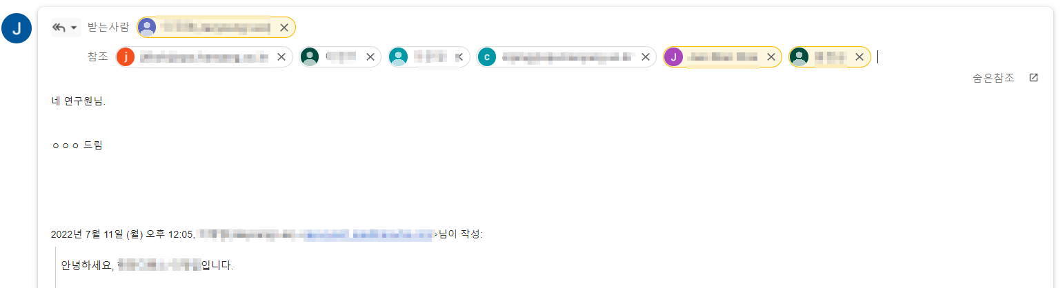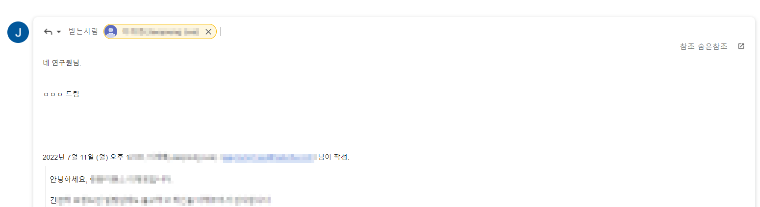 Etc 올바른 메일 답장 방법 feat.반드시 전체 답장으로 할 것 - 반응형 산학협력 과제를 하면서 메일로 업무 내용을 주고 받는 경우가 많다. 잘 하지 않는 실수인데 오늘 어이없게 답장을 하면서 실수를 했다. 메일 답장을 보냈는데 뭔가 이상했다. 다시 메일 보내는 걸로 들어가보니 참조가 하나도 걸려있지 않다. 당황잼. 왜 이런가 하면 받은 메일에서 우측 화살표를 무지성으로 클릭해서 답장을 했기 때문 이게 그 범인 우측의 점 세개를 클릭하면 이렇게 메뉴가 나온다. 여기서 전체답장을 클릭해야 기존의 참조가 걸린 사람들에게 모두 답장이 한 번에 간다. 기존에 빠져있던 사람들에게 답장이 단체로 간다. 쉽지만 꼭 잊지 않아야해서 이렇게 기록을 남긴다. 메일 전체 답장! 꼭 꼭 꼭 마지막에 한번 더 확인할 것! 반응형 공유하기 게시글 관리 Barrer. better 저작자표시 비영리 변경금지 (새창열림) 'Etc' 카테고리의 다른 글 삼성 노트 PC 버전 다운그 레이드 하기(미친건가 삼성) 삼성 노트 동기화 하기 (6) 2024.04.03 업무 효율성을 높여주는 듀얼 모니터 LG전자 그램 +View2 (플러스뷰2)16MR70 , 무상보증 혜택까지 (0) 2023.08.30 LaTeX 논문 수식 빠르게 복사하기 feat. Equatio + Notion (0) 2022.05.14 Contents 당신이 좋아할만한 콘텐츠 삼성 노트 PC 버전 다운그 레이드 하기(미친건가 삼성) 삼성 노트 동기화 하기 2024.04.03 업무 효율성을 높여주는 듀얼 모니터 LG전자 그램 +View2 (플러스뷰2)16MR70 , 무상보증 혜택까지 2023.08.30 LaTeX 논문 수식 빠르게 복사하기 feat. Equatio + Notion 2022.05.14 댓글 0 + 이전 댓글 더보기