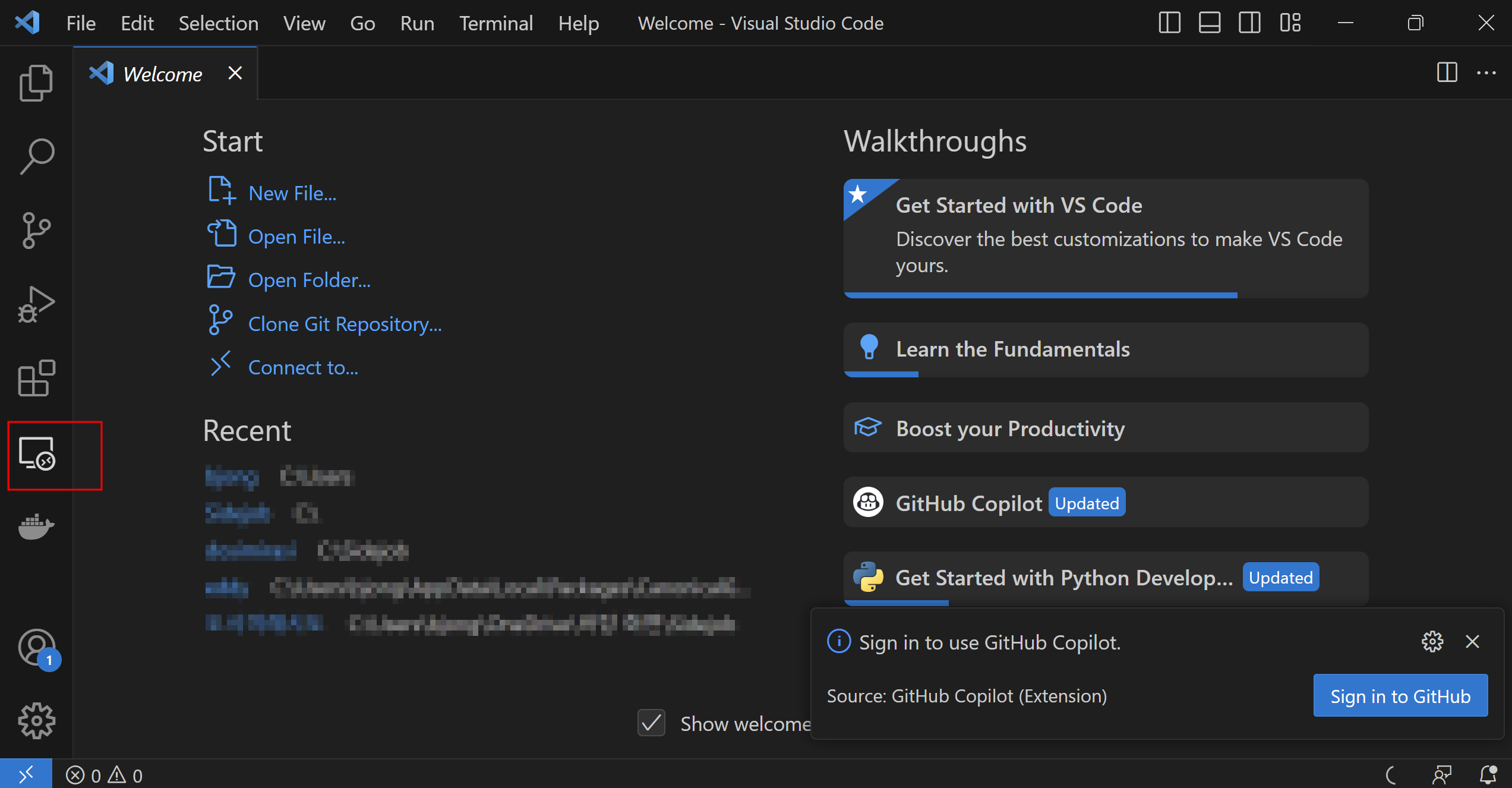 이에 VSCode에서 remote를 새로 세팅을 하였더니 정상적으로 WSL 실행이 되었음