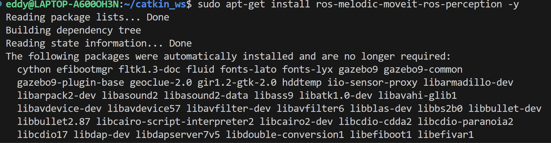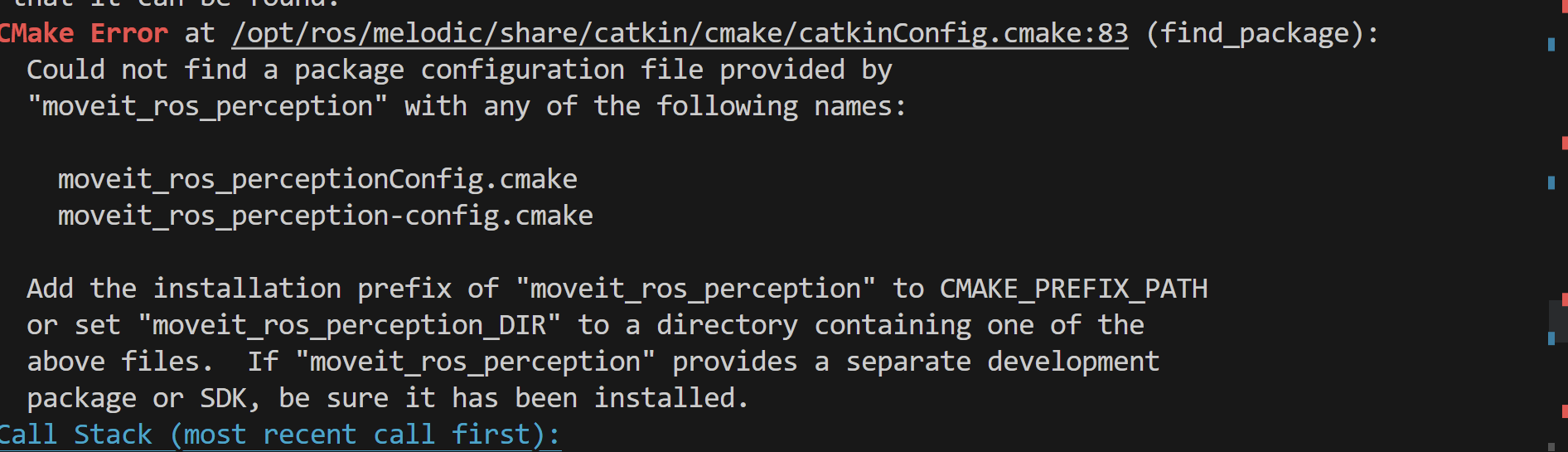 CMake Error at /opt/ros/melodic/share/catkin/cmake/catkinConfig.cmake:83 (find_package): Could not find a package configuration file provided by "moveit_ros_perception" with any of the following names: