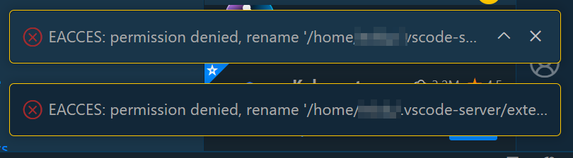 Dev record VScode EACCES: permission denied, rename .vscode-server/extensions in WSL - 반응형 문제 상황 VScode 에서 WSL 환경에서 사용할 때 extension을 설치를 해도 Install을 클릭을 해도 설치가 안되는 경우 EACCES: permission denied, rename '/home/ooo/.vscode-server/extensions/.5dfcb983-7c44-4500-96d3-b428889b51a8' -> '/home/ooo/.vscode-server/extensions/smilerobotics.urdf-0.3.0' 해결 방법 위와 같이 permission denied 가 발생한다. 이때 settings.json 파일에 아래 코드를 한 줄 입력한다. "remote.WSL.fileWatcher.polling":true, 그 다음 VSCode 를 껐다가 다시 실행한 뒤, extension 설치를 진행하면 설치가 된다. 반응형 공유하기 게시글 관리 Barrer. better 저작자표시 비영리 변경금지 (새창열림) 'Dev record' 카테고리의 다른 글 VScode conda 환경에서 import 안될 경우 No module named 'numpy' (0) 2023.11.07 OpenBLAS blas_thread_init: pthread_create failed for thread 1 of 24: Resource temporarily unavailableOpenBLAS blas_thread_init: RLIMIT_NPROC 1 current, 1 maxRuntime Error:Interrupt (0) 2023.10.04 VS Code Server for WSL closed unexpectedly. Check WSL terminal for more details. VSCode에서 WSL 접속 안될 경우 (0) 2023.08.27 [ROS] Ubuntu 18.04 ros melodic에 Moveit 설치하기 (0) 2023.08.27 [Python] import torch.nn as nn 역할 (0) 2023.08.14 Contents 당신이 좋아할만한 콘텐츠 VScode conda 환경에서 import 안될 경우 No module named 'numpy' 2023.11.07 OpenBLAS blas_thread_init: pthread_create failed for thread 1 of 24: Resource temporarily unavailableOpenBLAS blas_thread_init: RLIMIT_NPROC 1 current, 1 maxRuntime Error:Interrupt 2023.10.04 VS Code Server for WSL closed unexpectedly. Check WSL terminal for more details. VSCode에서 WSL 접속 안될 경우 2023.08.27 [ROS] Ubuntu 18.04 ros melodic에 Moveit 설치하기 2023.08.27 댓글 0 + 이전 댓글 더보기