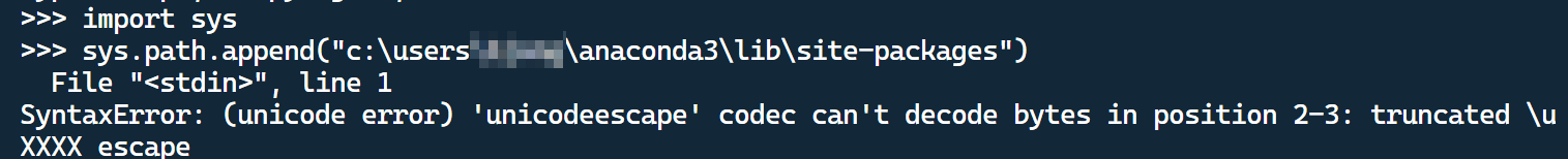 해당 경로 인 C:\users\********\site-pacakges 경로를 sys.path에 추가한다.