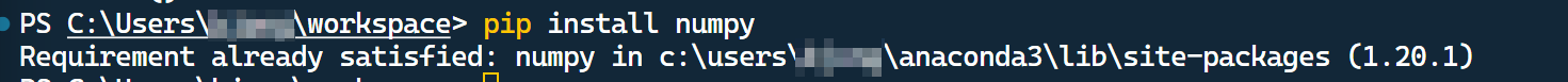 pip install numpy에서 나와있던 경로를 바로 입력하면 다음과 같은 오류가 발생하기 때문에