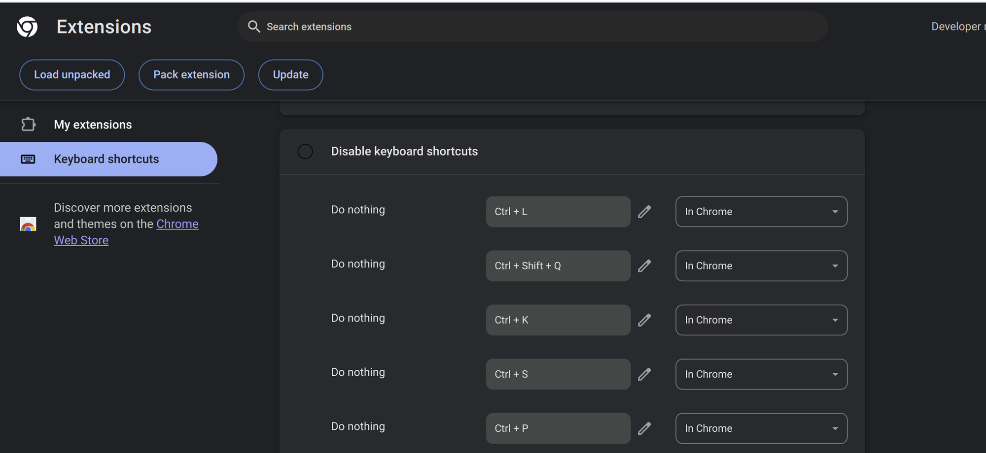 Dev record 크롬 단축키 비활성화 disable keyboard shortcuts - 반응형 크롬 내에서 이리 저리 타이핑을 많이 치다가 보면 크롬 단축키 때문에 창이 꺼져버리거나 마음대로 검색창으로 커서가 이동하는 경우가 꽤 많이 발생하곤 한다. 이를 방지하기 위한 크롬 extension이 좋은게 있어서 소개해본다. https://chromewebstore.google.com/detail/disable-keyboard-shortcut/aidbmcboeighgdnilpdljbedbbiocphj?pli=1 Disable keyboard shortcuts Disable arbitrary keyboard shortcuts chromewebstore.google.com Chrome에 추가만 하면 설치는 간단하게 끝난다. 설치가 완료되면 주소창에 다음을 입력한다. chrome://extensions/shortcuts 그러면 왼쪽에 Keyboard shortcuts가 나오는데 이 탭에 들어가서 본인이 안쓰는 단축키를 입력하면 끝난다. 특히나 우측 alt키를 한영 전환으로 쓰고 있다면 alt+ 문자 조합으로 계속 꼬이는 경우가 있었는데 해결하고 나니 매우 편안해진다. 반응형 공유하기 게시글 관리 Barrer. better 저작자표시 비영리 변경금지 (새창열림) 'Dev record' 카테고리의 다른 글 Vscode jupyter notebook interrupt 안먹는 경우 (2) 2024.07.18 ModuleNotFoundError: No module named 'IPython’ (0) 2024.07.02 SyntaxError: Non-ASCII character '\xce' in file /home/eddie/depth_estimation/monocular-depth-estimation/trainer.py on line 360, but no encoding declared; see http://python.org/dev/peps/pep-0263/ for details (0) 2024.07.02 ModuleNotFoundError: No module named 'cv2' (0) 2024.02.25 ModuleNotFoundError: No module named 'skimage' (0) 2024.02.04 Contents 당신이 좋아할만한 콘텐츠 Vscode jupyter notebook interrupt 안먹는 경우 2024.07.18 ModuleNotFoundError: No module named 'IPython’ 2024.07.02 SyntaxError: Non-ASCII character '\xce' in file /home/eddie/depth_estimation/monocular-depth-estimation/trainer.py on line 360, but no encoding declared; see http://python.org/dev/peps/pep-0263/ for details 2024.07.02 ModuleNotFoundError: No module named 'cv2' 2024.02.25 댓글 0 + 이전 댓글 더보기