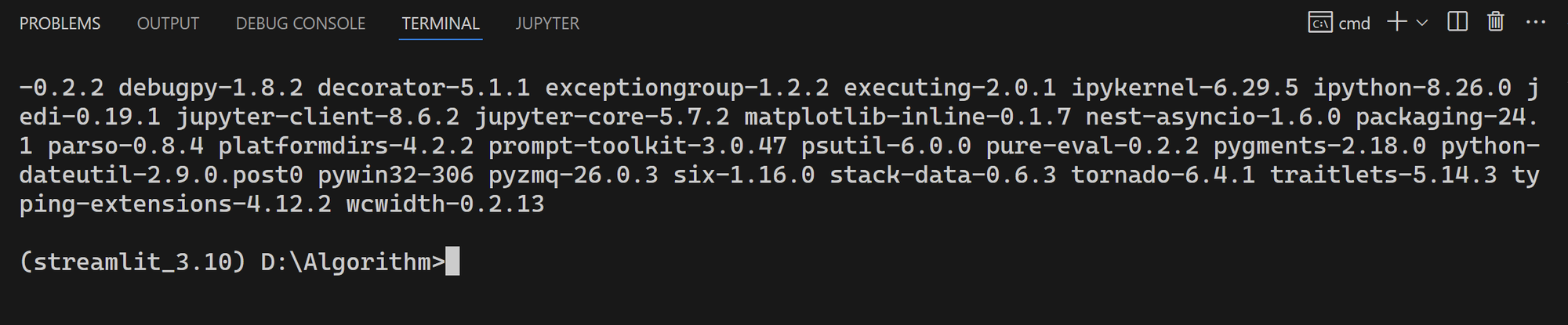 재설치를 한 후 vscode 상의 jupyter notebook을 사용하였더니 문제가 해결되었다.