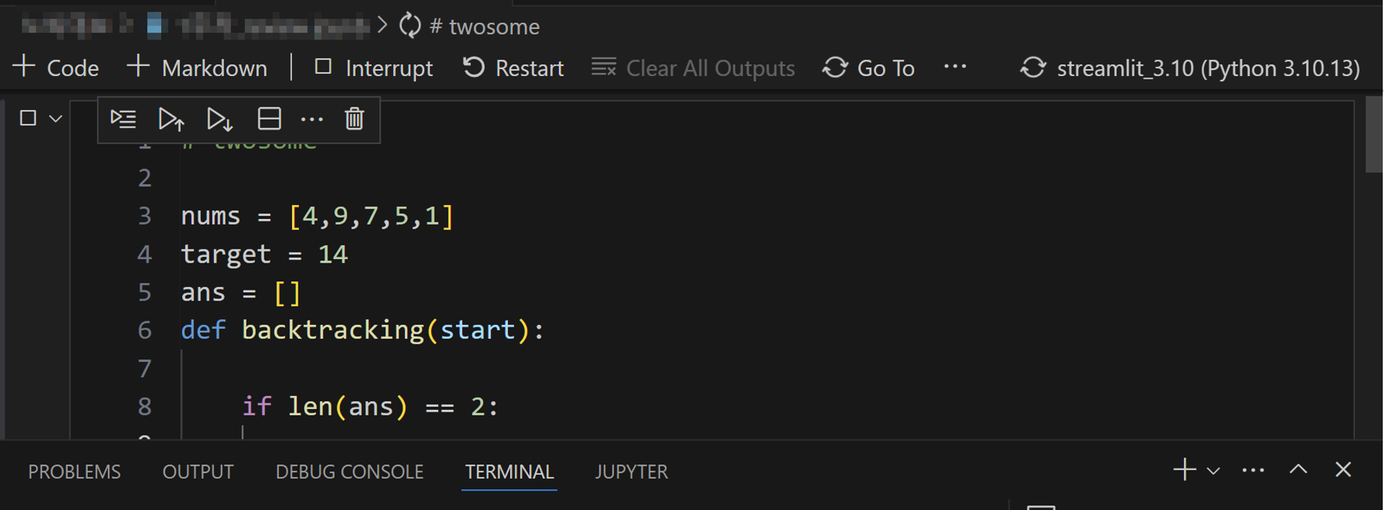 vscode 상의 python extension을 제거 후 재설치 하여 문제를 해결하였다.