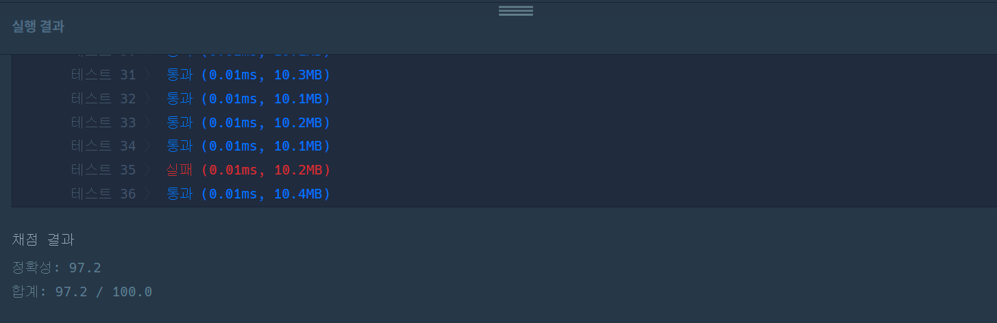 전 테스트 중 35번 케이스에 대해 실패.