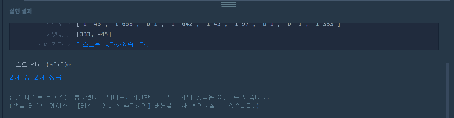 다만 조건을 다 돌고 나서 아무것도 남지 않았을 경우를 처리하지 않아서 오답이 나와서 조금 헷갈렸던것.