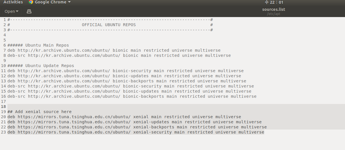 deb https://mirrors.tuna.tsinghua.edu.cn/ubuntu/ xenial-updates main restricted universe multiverse