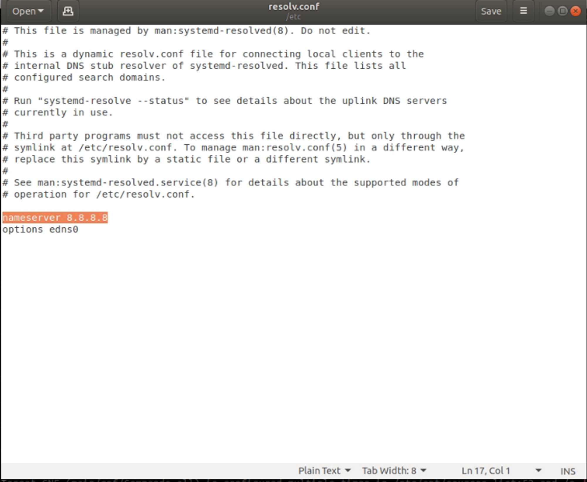 Dev record/Ubuntu Could not resolve 'kr.archive.ubuntu.com' - 반응형 문제 상황 Could not resolve 'kr.archive.ubuntu.com' apt-get update 등을 하는데 위와 같은 에러 코드가 발생하는 경우 해결 방안 sudo gedit /etc/resolv.conf nameserver를 위와 같이 8.8.8.8 로 변경한다. 반응형 공유하기 게시글 관리 Barrer. better 저작자표시 비영리 변경금지 (새창열림) 'Dev record > Ubuntu' 카테고리의 다른 글 apt-get update 안될 경우 (0) 2023.01.05 W: Target Packages (main/binary-amd64/Packages) is configured multiple times (0) 2023.01.05 Package python-pip is not available, but is referred to by another package. (0) 2023.01.05 VScode 시각화 툴 안됨 qt.qpa.plugin: Could not load the Qt platform plugin "xcb" in "/home/eddy/anaconda3/envs/py3.9/lib/python3.9/site-packages/cv2/qt/plugins" even though it was found.This application failed to start because no Qt platform plugi.. (0) 2023.01.04 Running cells with 'Python 3.7.13 ('base')' requires ipykernel package. (0) 2023.01.04 Contents 당신이 좋아할만한 콘텐츠 apt-get update 안될 경우 2023.01.05 W: Target Packages (main/binary-amd64/Packages) is configured multiple times 2023.01.05 Package python-pip is not available, but is referred to by another package. 2023.01.05 VScode 시각화 툴 안됨 qt.qpa.plugin: Could not load the Qt platform plugin "xcb" in "/home/eddy/anaconda3/envs/py3.9/lib/python3.9/site-packages/cv2/qt/plugins" even though it was found.This application failed to start because no Qt platform plugi.. 2023.01.04 댓글 0 + 이전 댓글 더보기
