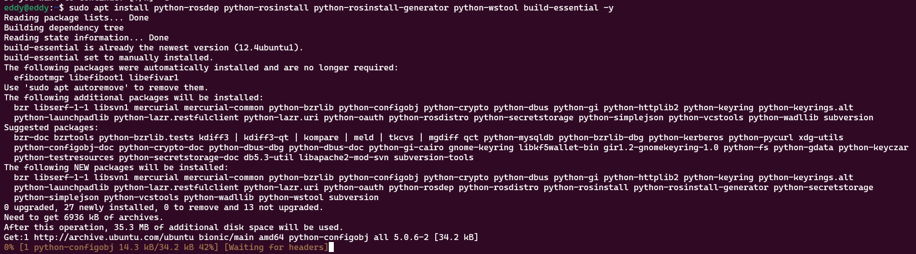 sudo apt install python-rosdep python-rosinstall python-rosinstall-generator python-wstool build-essential