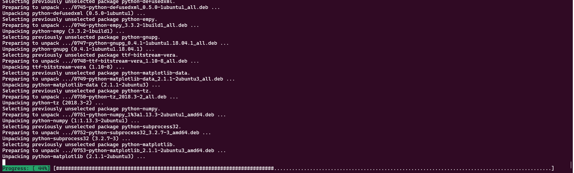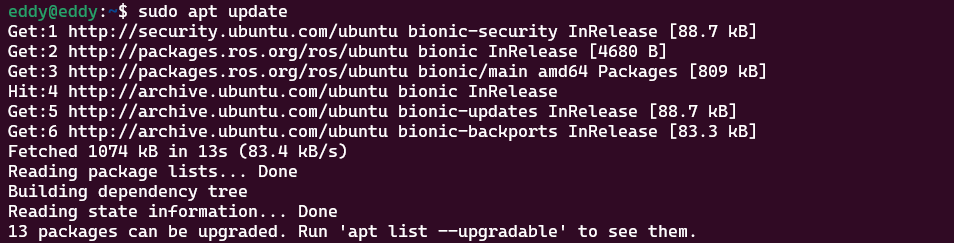 아까 curl로 추가한 ros.org 사이트에 대해 application package tool 을 통해 업데이트가 진행된다