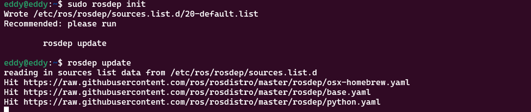 rosdep 초기화 및 업데이트를 진행한다.