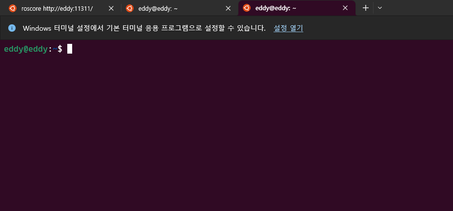 맨 처음 터미널에는 roscore를 실행시킨다.
