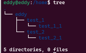 그 하위는 ls 명령어로는 파악하기 어려운데 tree 명령어로 eddy 폴더 하위에 test_1, test_2 라는 폴더가 있는 것이 확인이 된다.
