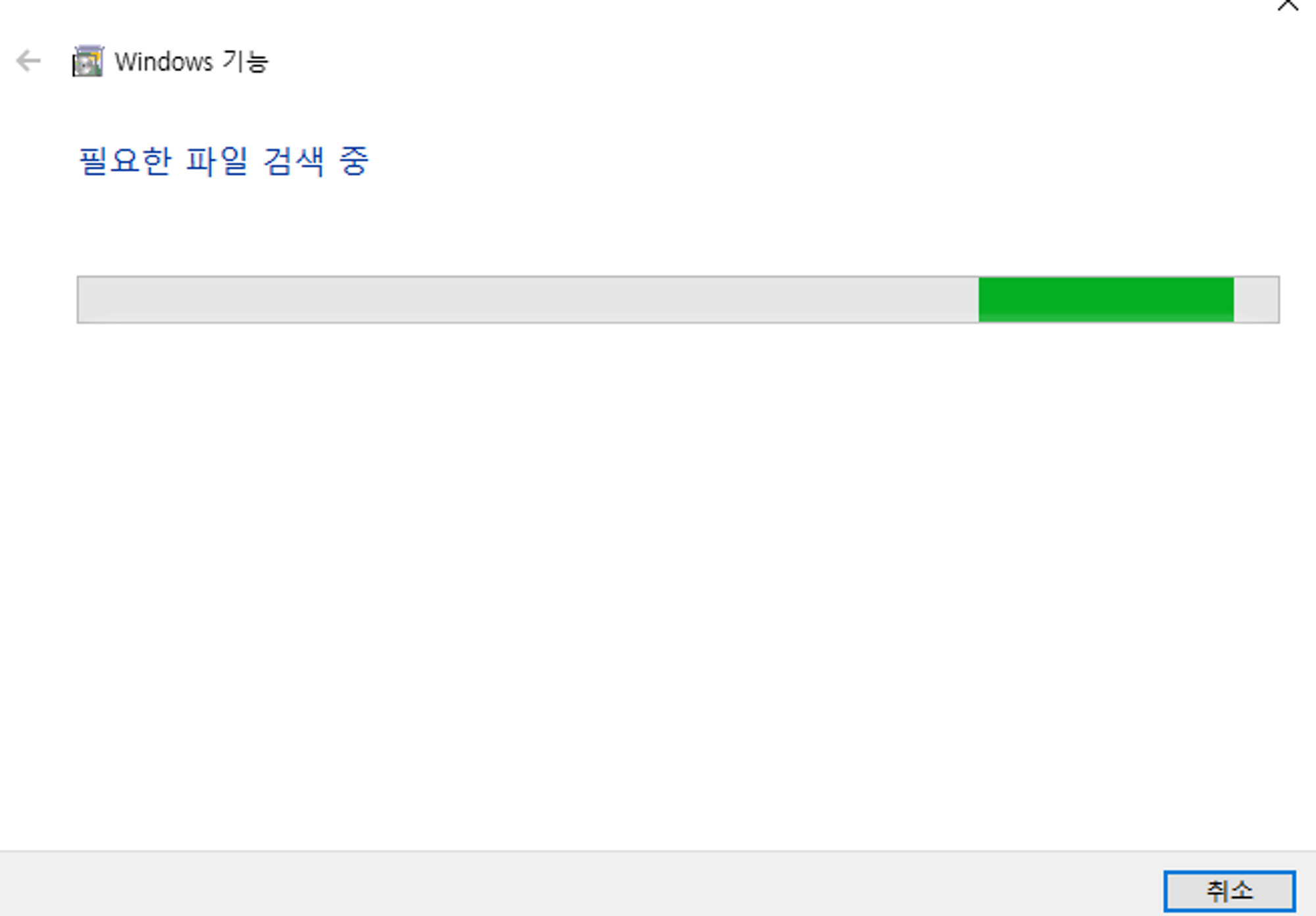 그러면 Windows 기능에서 여러 필요 파일들을 검색한 다음 자동으로 설치를 진행한다.