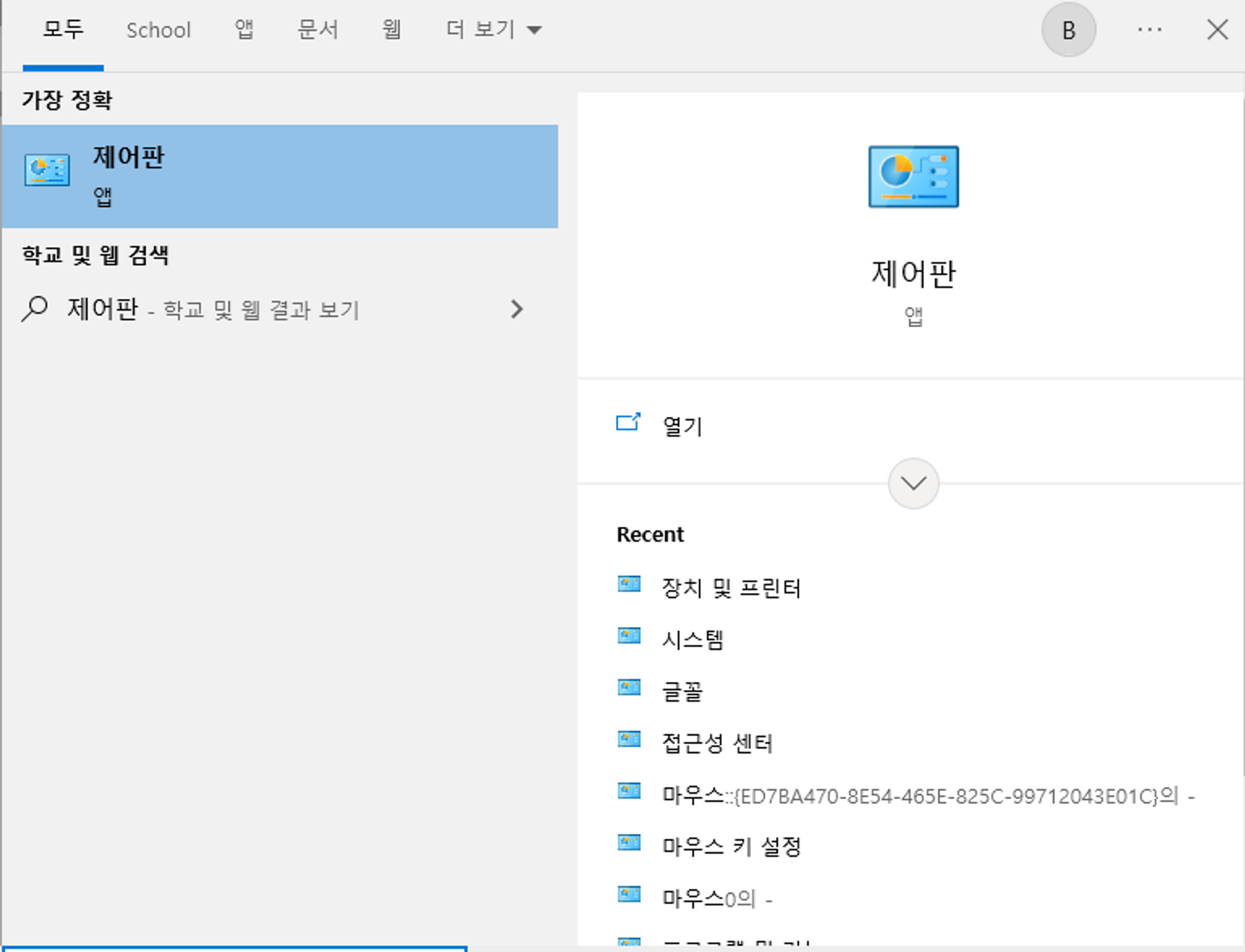 우선 윈도우 찾기에 제어판을 입력하고 클릭한다.