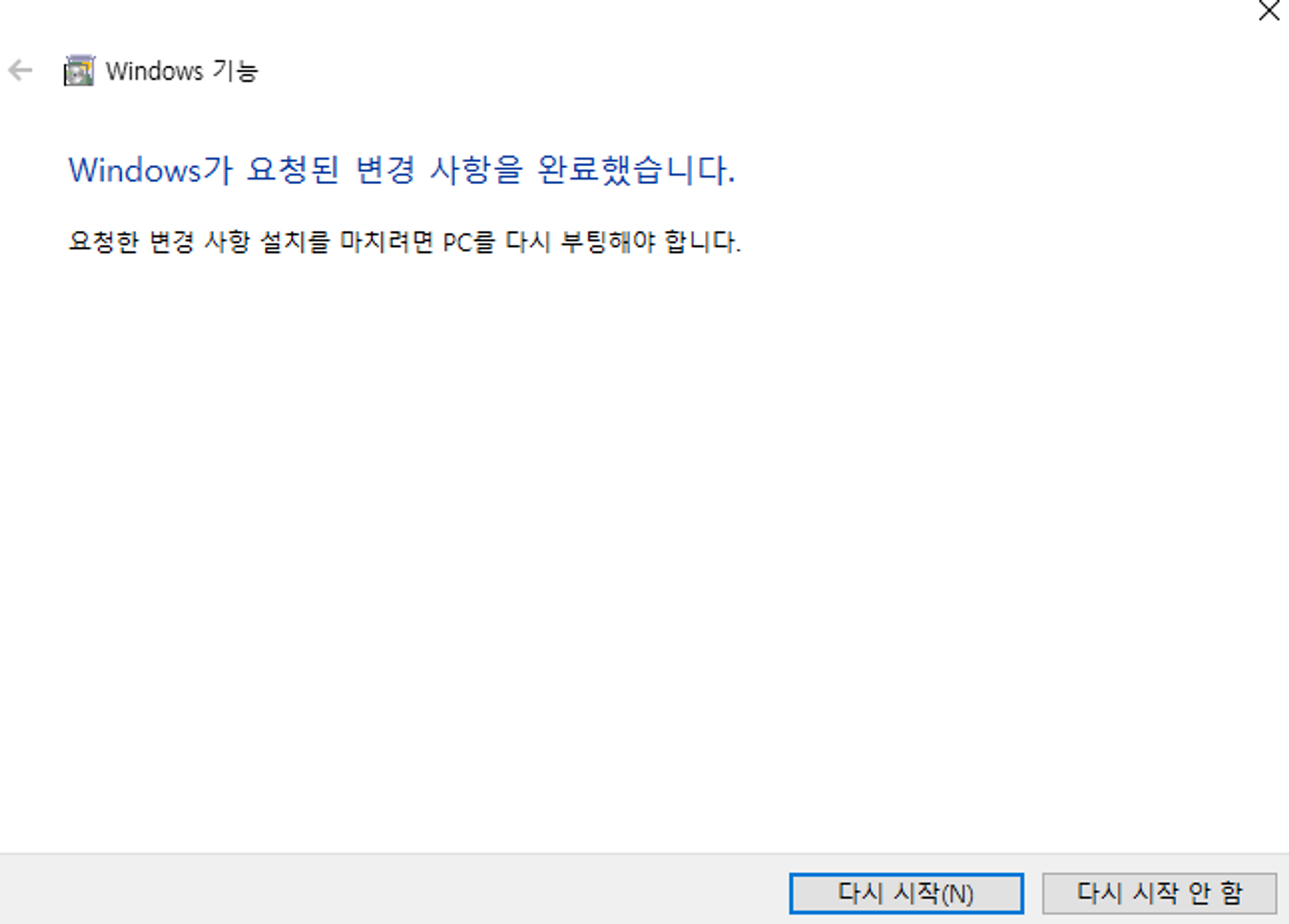 설치가 완료되면 컴퓨터를 재부팅 한다. 왠만하면 다시시작을 클릭하고 재부팅하자.