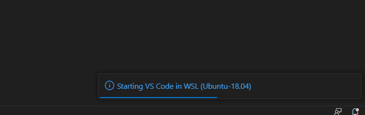 클릭을 하고 나면 아래 Starting VS Code in WSL (Ubuntu-18.04) 라는 창이 뜬다.