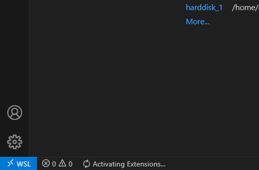 WSL 환경이 Vscode에 잘 붙으면 좌측 아래에 WSL 이라고 표시가 나오면서 Activating Extensions.. 라고 돌아가다가 환경 설정이 마무리된다.
