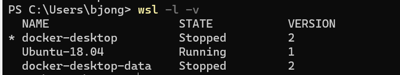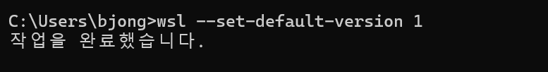 해당 명령어를 사용하면 기존의 환경이 변하는 게 아니라 이후에 새로운 환경을 만들 때 WSL 1 버전으로 생성되게 된다.