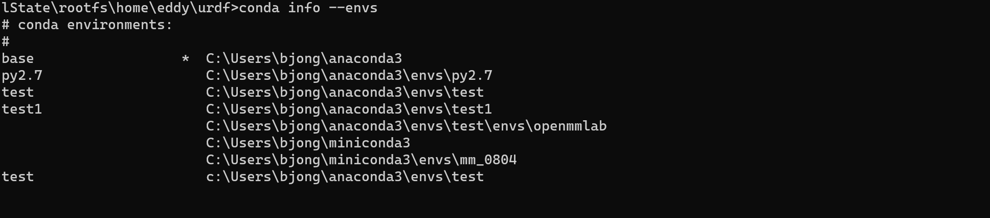 우선 설치된 가상환경의 리스트를 확인해 실행하고자 하는 가상환경의 이름을 확인한다.