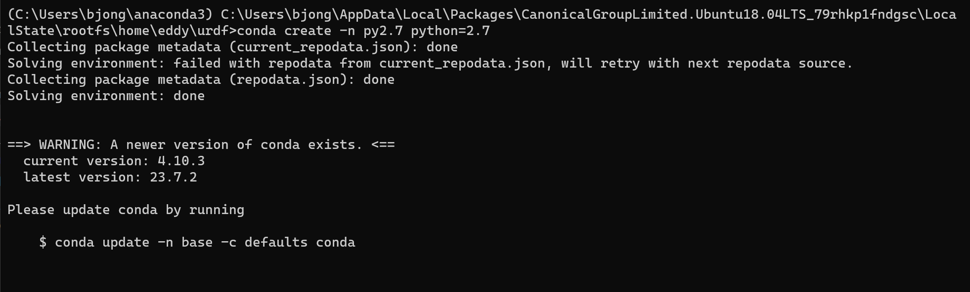 방금 만든 py2.7이라는 가상환경 이름이 보인다.